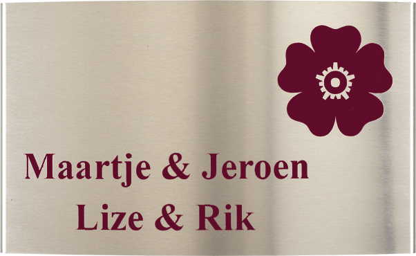 RVS is een zeer sterke staalsoort, welke uitstekend geschikt is voor gebruik in en rondom uw woning. RVS staat voor roest-vast-staal en is daardoor bijzonder weersbestendig, maar niet geheel vrij van onderhoud. Daarom dient uw RVS-naambord af en toe met HG snelglans (te verkrijgen bij de doe-het-zelf vakman en/of bouwmarkt) behandeld te worden. Het is niet verstandig de RVS-naamborden te poetsen, doordat de tekst op alle RVS-naamborden beletterd wordt; zo kan de tekstlaag niet beschadigen of vervagen, indien u geen belettering wenst, dient dit aan te geven in de opmerkingen, wij voorzien dan het naambord van een lasergravure, deze is altijd antraciet/zwart. Tot slot: alle RVS-naamborden worden standaard geleverd met RVS-bevestigingsmateriaal om zo oxidatie bij de schroefgaten tegen te gaan. (N.B. Bovenstaande geldt ook voor alle aluminium en RVS-look naamborden 1400/1500 serie met de uitzondering dat deze naamborden standaard zonder schroefgaten, maar zelfklevend geleverd worden). RVS uniek materiaal, geschikt voor allerlei stijlen, dat tegen een stootje kan!